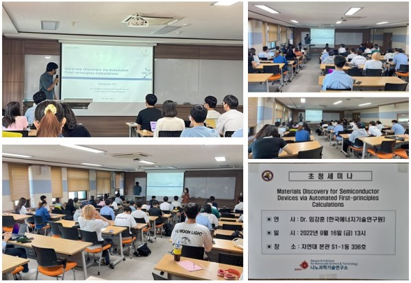 국내학자 초청세미나(22.09.16) - Dr.임강훈 관련링크 목록 본문 국내학자 초청세미나(22.09.16) - Dr.임강훈 1.세미나일자: 2022.09.16(S1-1동 336호)2.연사자: Dr.임강훈3.소속: 한국에너지기술연구원4.주제: Materials Discovery for Semiconductor Devices via Automated First-principles Calculations 목록