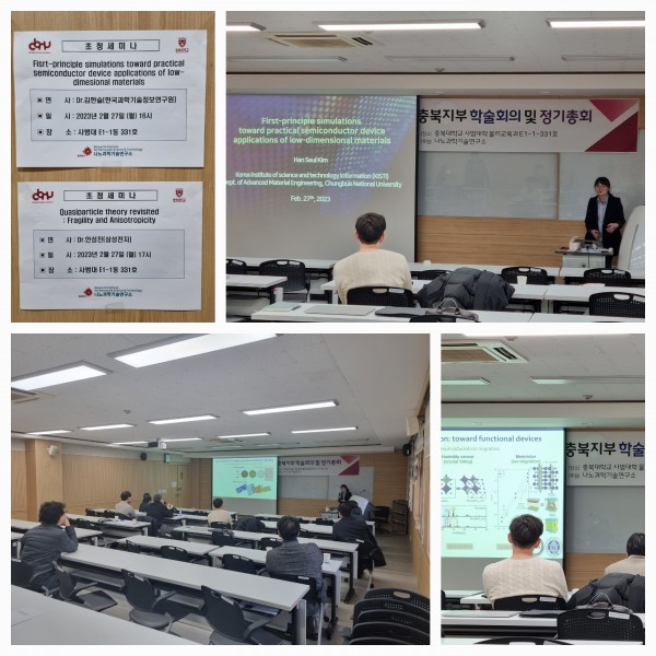 국내학자 초청세미나(23.2.27) - Dr.김한슬 관련링크 목록 본문 국내학자 초청세미나(23.2.27) - Dr.김한슬 1.세미나일자: 2023.2.27.16시(E1-1동 331호)2.연사자: Dr.김한슬3.소속: KISTI 4.주제: Fisrt-principle simulations toward practical semiconductor device applications of low-dimesional materials 목록